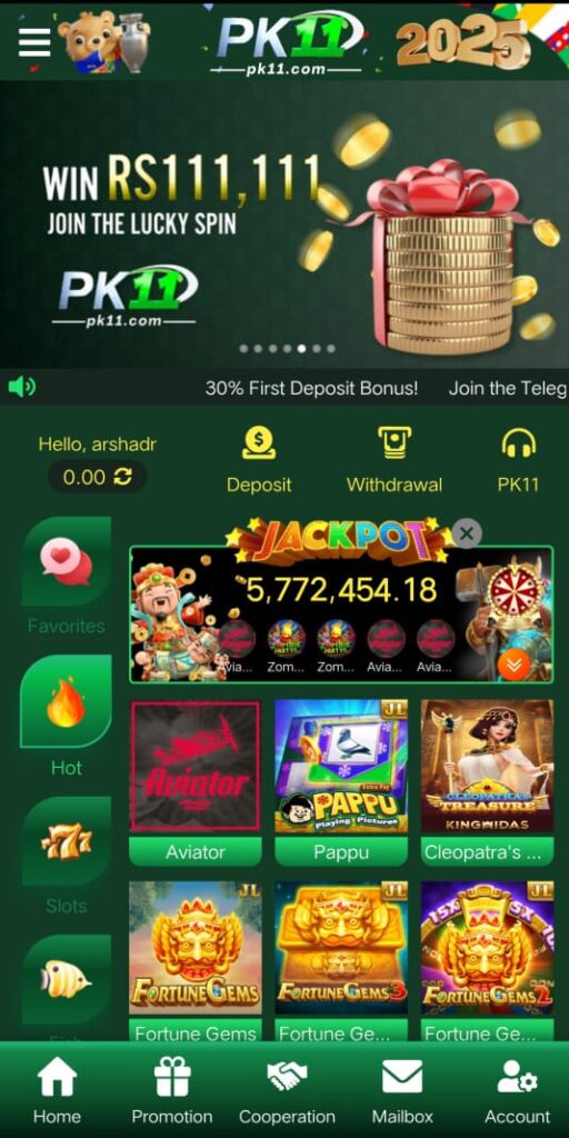 PK 11 App is an online casino app created especially for Pakistani players who love slot and card games. It allows users to play different types of games and earn real cash rewards. Players can explore hundreds of games within one app, including classic slots, fishing games, live dealer games, and other casino favorites. The app is designed with smooth graphics and fast speed to ensure a great gaming experience. It also supports multiple local payment options, making it easy for users in Pakistan to deposit and withdraw money.